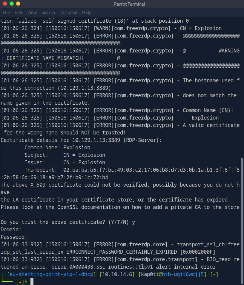 Password certainly expired. Interesting. Let’s try to open op a gui connection.