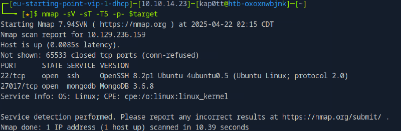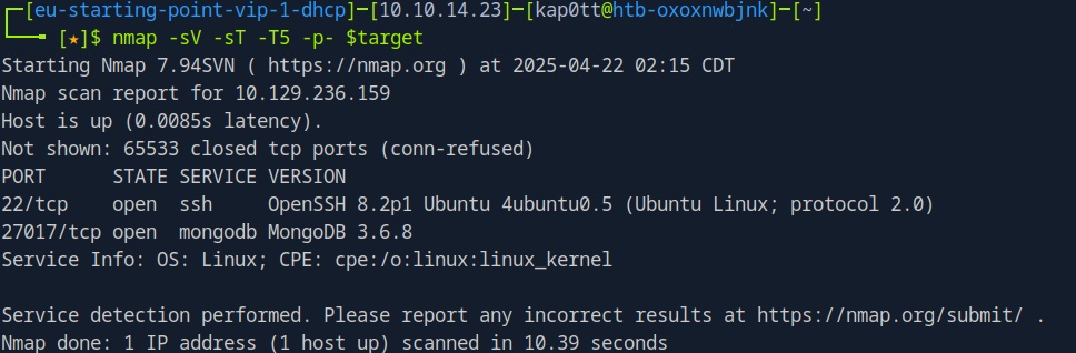 Machines that shouldn’t have direct ingest from the internet anyway. I digress. Let’s fire up nmap and see what this machine is doing.
