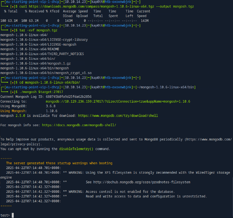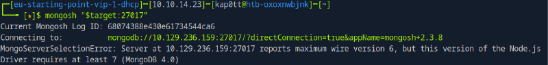 That’s a very old mongodb version. Let’s see if we can directly connect to it…