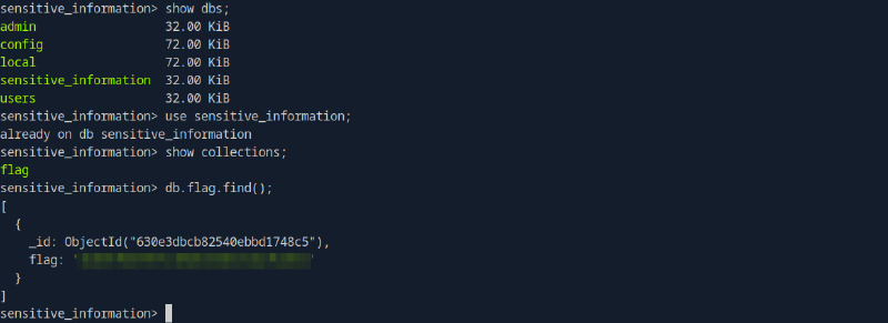 sensitive_information looked like an interesting database. And the flag collection is the cherry. Flag acquired.